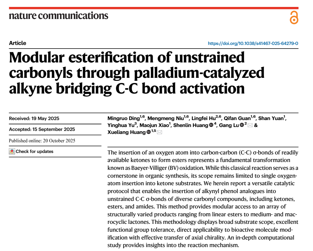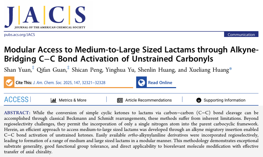 黄学良教授课题组在桥联C-C键活化研究方面取得了新进展,分别在《Journal of the American Chemical Society》和《Nature Communications》发表学术论文。